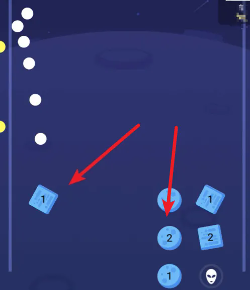 每个方块或圆形上都有一个数字,该数字代表将其消除所需的打击次数。例如,若数字是2,意味着用一个小球弹击它两次,或者用两个小球弹击,就能把它消除。