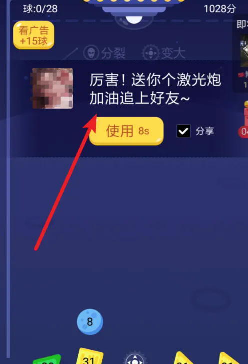 在游戏里,我们能够获取到一些道具,像分裂道具或者增大道具。分裂道具能使一个球变为两个球,也就是说从下一轮开始给自己增添一个球。