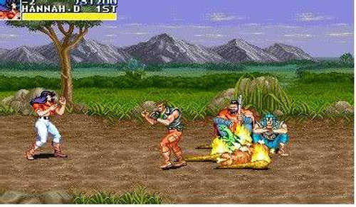 6、本关 BOSS 的第一形态行动十分灵活。具体打法是,尽快击杀率先出现的一个小兵,如此一来便不会有其他小兵(特别是猴子兵)出来干扰。不然,哪怕只有两个小兵与灵活的 BOSS 一同对付你,心理素质欠佳的玩家必定会损失大量生命值。如此便能够单挑 BOSS 第一形态。具体的完美操作方法为,将 BOSS 击出屏幕右端后,站在离最右端不远不近之处,背向最右端持续按拳,此时会发现 BOSS 恰好跳到你按拳的位置,必定会被击中。接着 3 拳之后再将其扔回右端屏幕外,继续等待它跳回来……至于 BOSS 的第二形态,只需来回呈 8 字形跑动即可,无需多言。