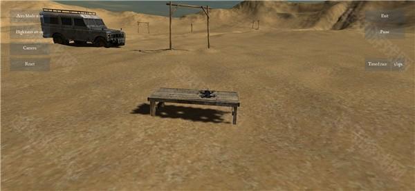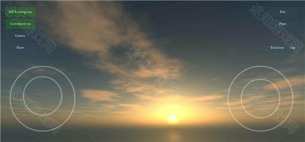 2、进入后,能看到左侧依次为自调平开启、高帧率开启、第三人称视角以及最后的重置;右侧则是退出按钮与暂停按钮。
