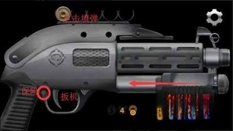 5、霰弹枪——装填子弹时,需先放入四颗,拉枪栓后才能装入最后一颗。开启无限子弹模式,也会带来别样惊喜。