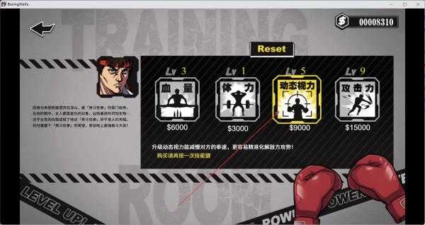 4、踏入训练界面,消耗游戏货币,对动态视力等属性进行升级,以此提升角色的战斗能力。