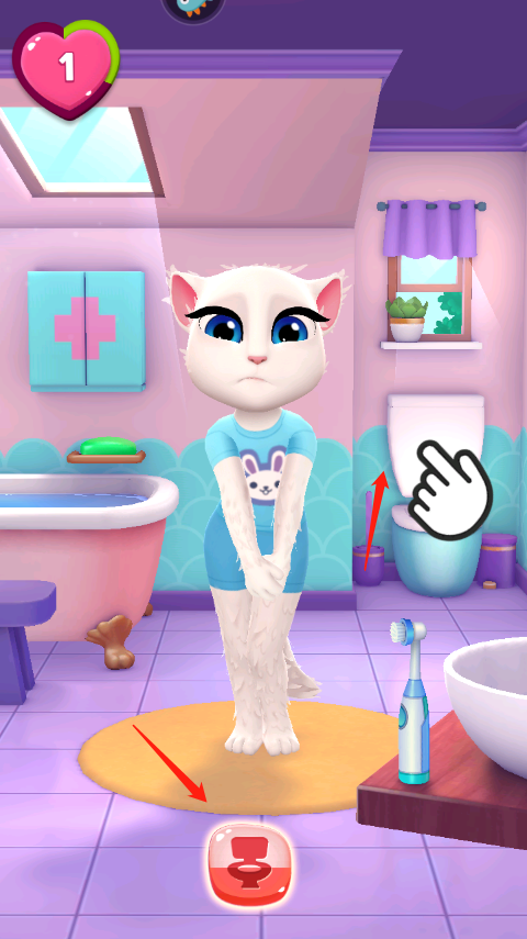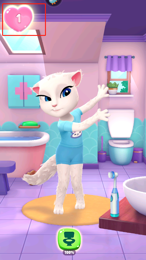 4、小猫美女上完厕所后,心情就会变好,瞧,左上方已经得到了一颗心心呢。