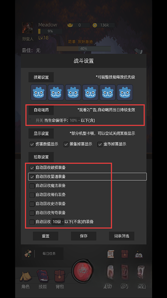 7、若想提升游戏体验,观看两条广告即可解锁“自动回血”功能,使战斗续航更持久。