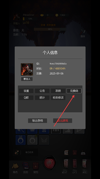 3、进入游戏之后,点击角色头像,开启“兑换码”功能,选择“一键补领”选项,领取所有开局奖励。