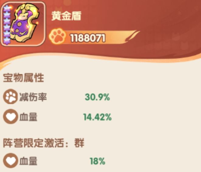 最后,宝物可选择群雄专属的黄金盾,该盾牌能大幅增加血量。