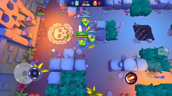 1、通过左侧控制摇杆操控你的坦克走位,避开子弹以及敌人的追踪。