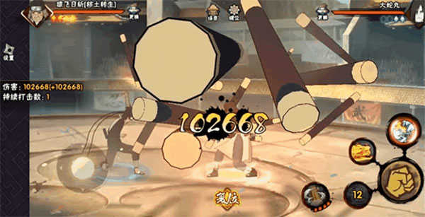 在决斗场里,开启百豪之印的纲手「百豪」完全将力量释放到极致。使用一技能怪力起手抓取敌人,砸飞后紧接着接上二技能金豪拳,即便没有暴击,也能打出接近100万的伤害。