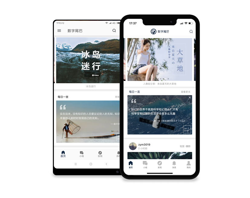数字尾巴是一个全新打造的兴趣资讯分享交流社区,其包含数码、手机、平板、笔记本电脑、影音、汽车、视频、摄影、露营、家装、活动、生活、旅行、骑行、游戏、宠物、时尚、运动等众多板块圈子。在这里,你可以关注自己感兴趣的圈子,随时随地分享动态,与他人进行帖子话题交流。同时,全网多领域的资讯也会第一时间呈现在你眼前。