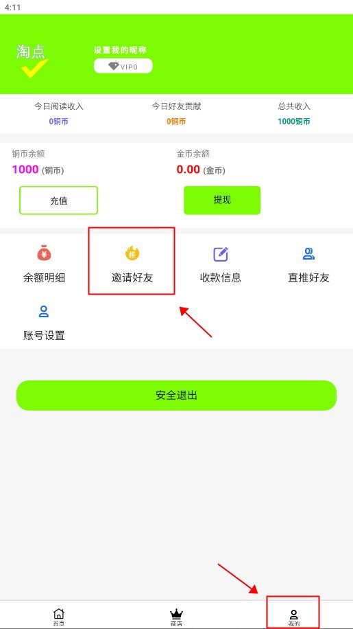 快来开启躺赚之旅!点击[我的],再点[邀请好友],然后截图保存自己的邀请二维码,转发至各大社交平台,躺赚之路就此启程!