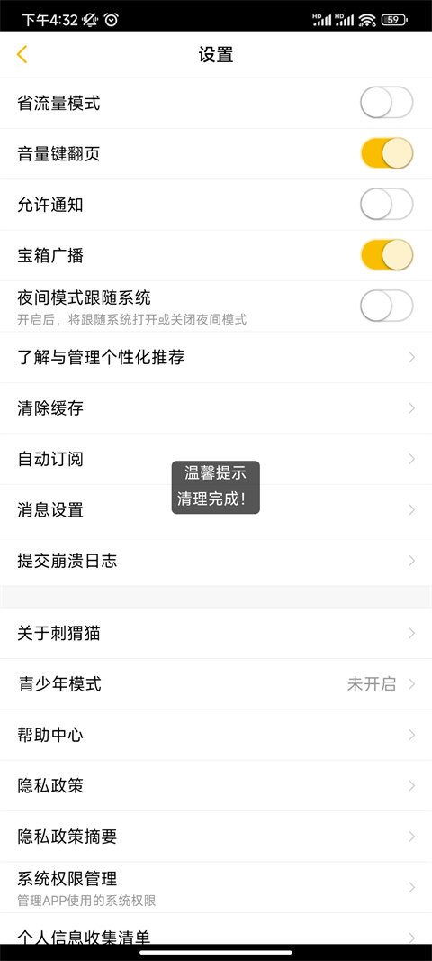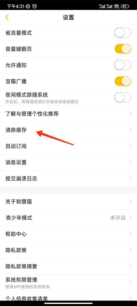 刺猬猫阅读怎么清除缓存