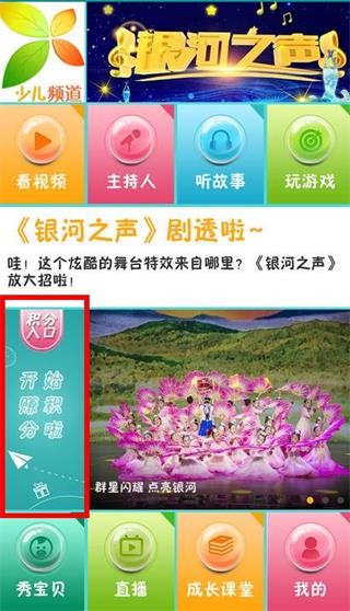 在“央视少儿”客户端中,点击首页的“积分入口” ↓↓↓