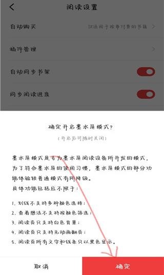 4、于弹窗内点击【确定】,即可开启墨水屏。