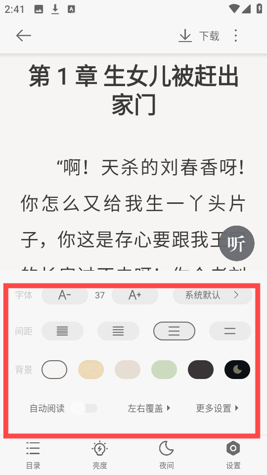 6、在阅读时,用户能够自行调节背景颜色和字体大小,从而获取最优视觉体验。